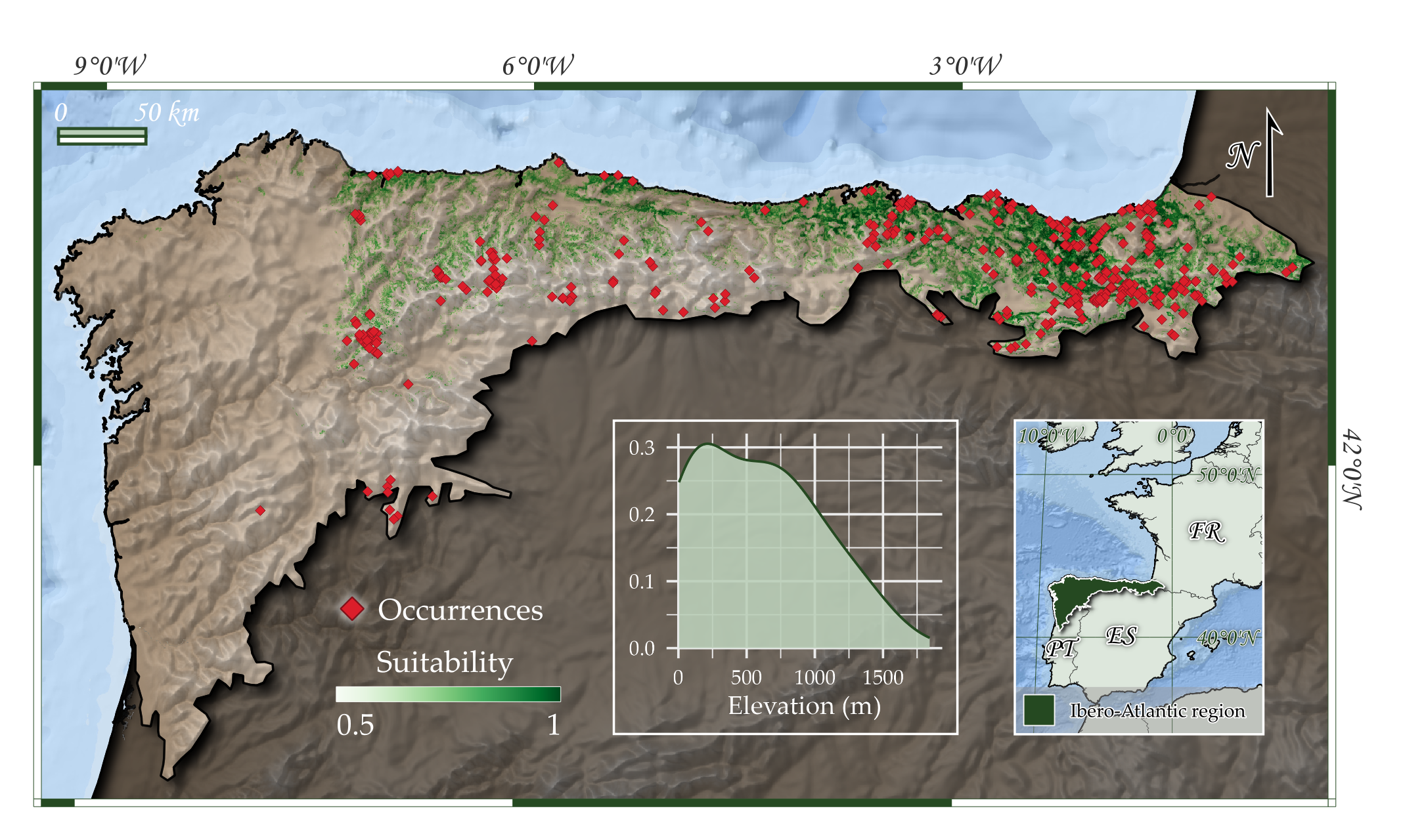 Known occurrences and potential area of occupancy of the habitat type in the study region.