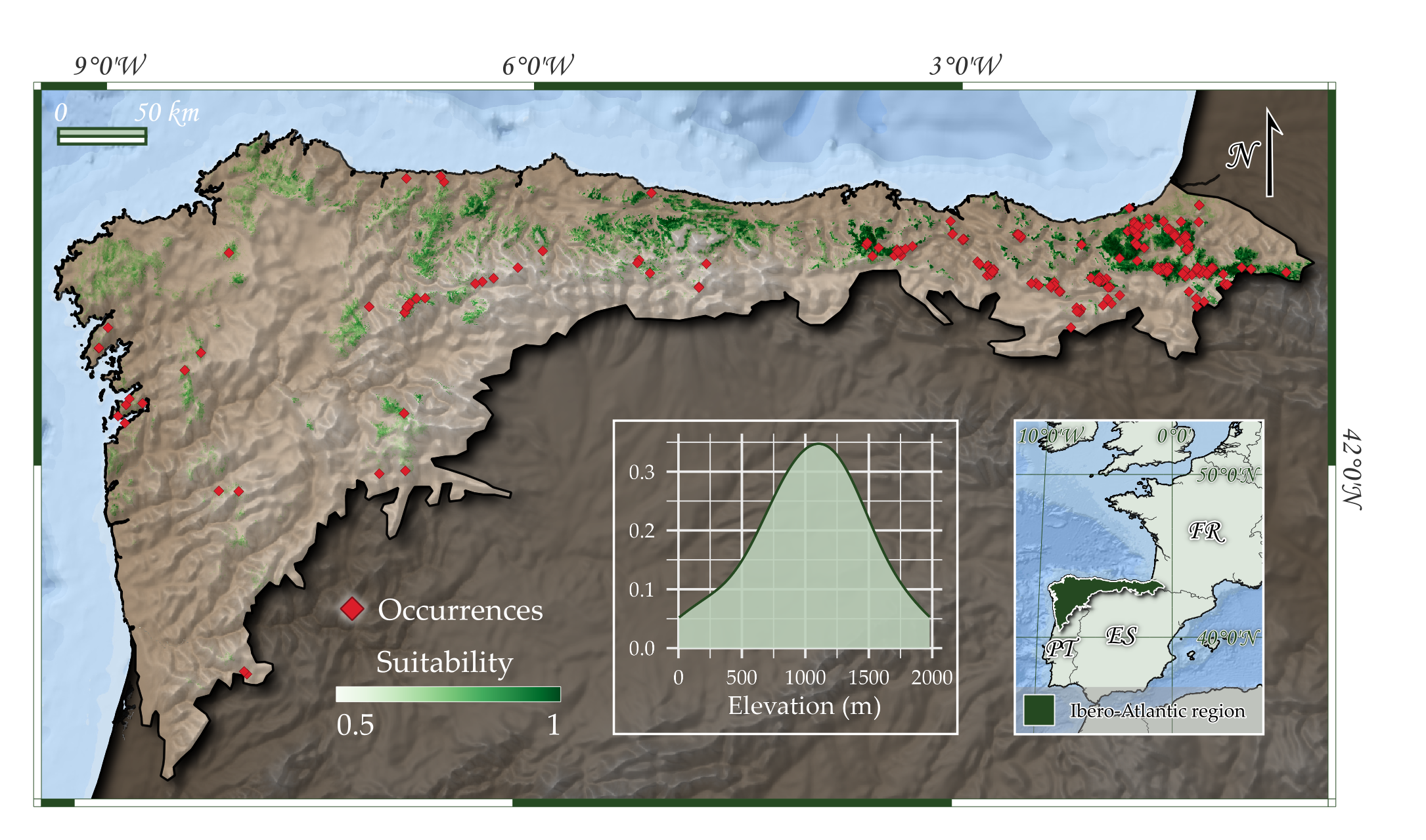 Known occurrences and potential area of occupancy of the habitat type in the study region.