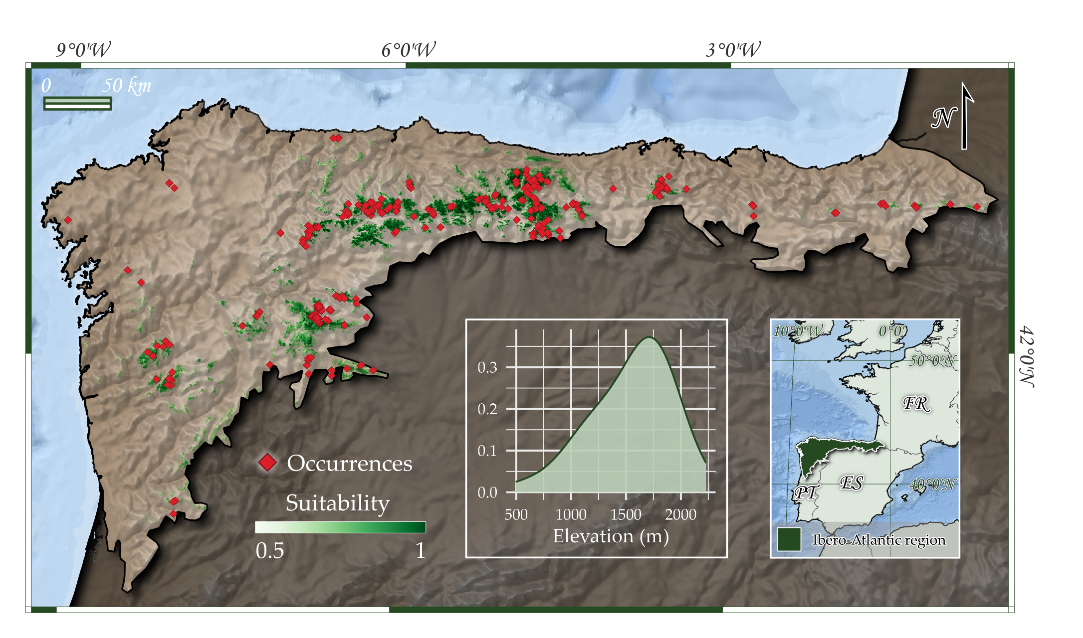 This unit replaces R1M2 at higher elevations (not without some transitional communities). It occurs often in a mosaic, generated by differences in grazing pressure and snow pack duration, with S23y, S33z and S421, as well as, at lower elevations and under more submediterranean, summer-dry climates, with S412. As explained under R43y, we create a new level IV unit since not all our Nardus grasslands fit confortably in R435 as R43521 (“Cantabrio-Cordilleran oro-Mediterranean mat-grass swards).