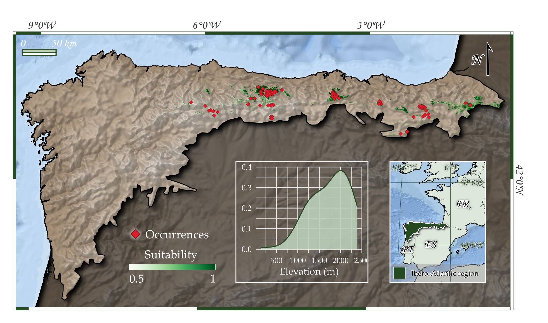 These communities may develop either above the level where S23x can occur (where they act as a basophilous analogue of R43z) or in mosaic with such dwarf juniper scrub in north-facing slopes, too snowy for R443. In this latter case, the lowland analogue is R1A3. The highest stands are partially referable to the EUNIS level V unit R4423 [“Cantabrian naked-rush swards"]); the lower and more widespread, to R4415 (“Cantabrian thrift swards").