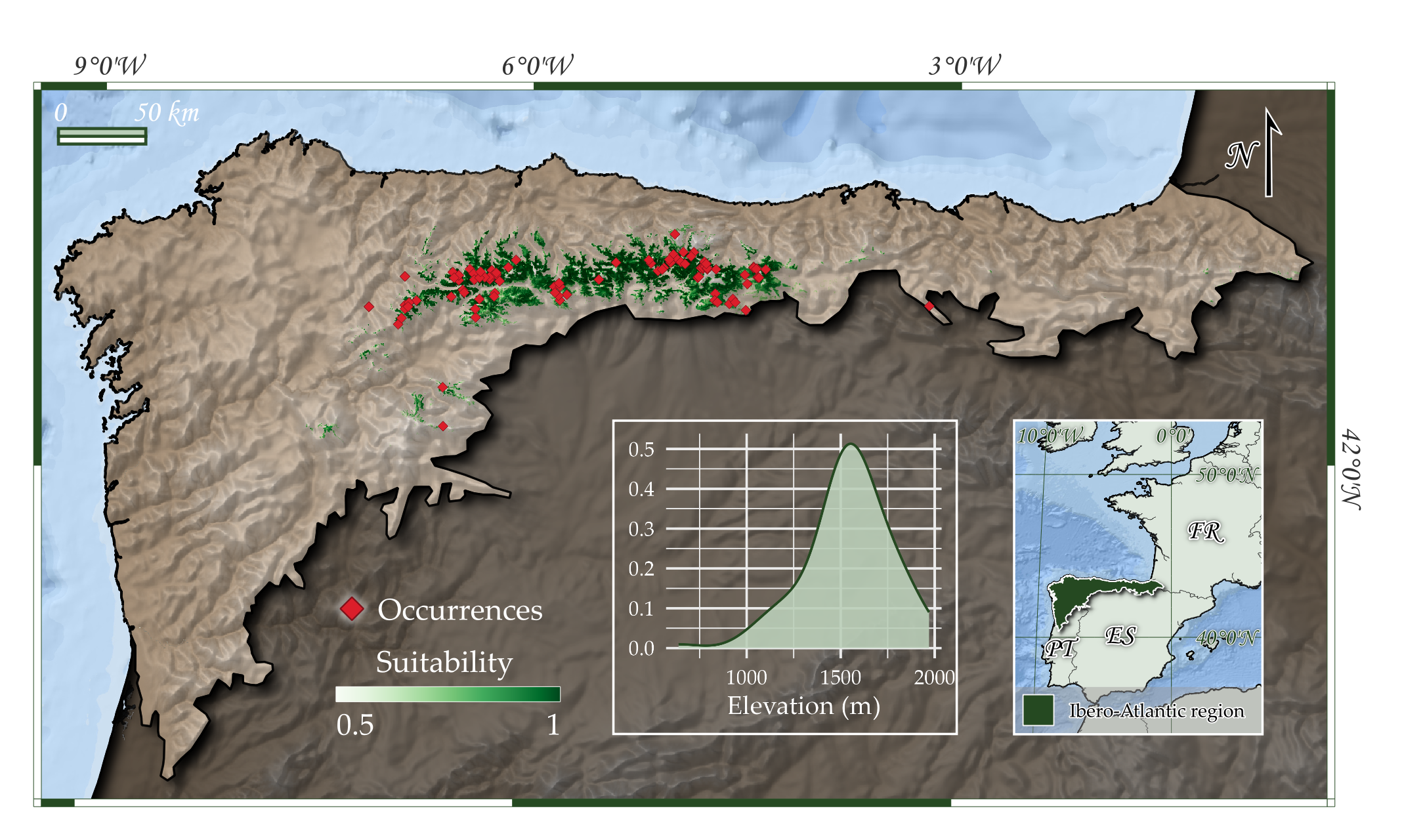 Known occurrences and potential area of occupancy of the habitat type in the study region.