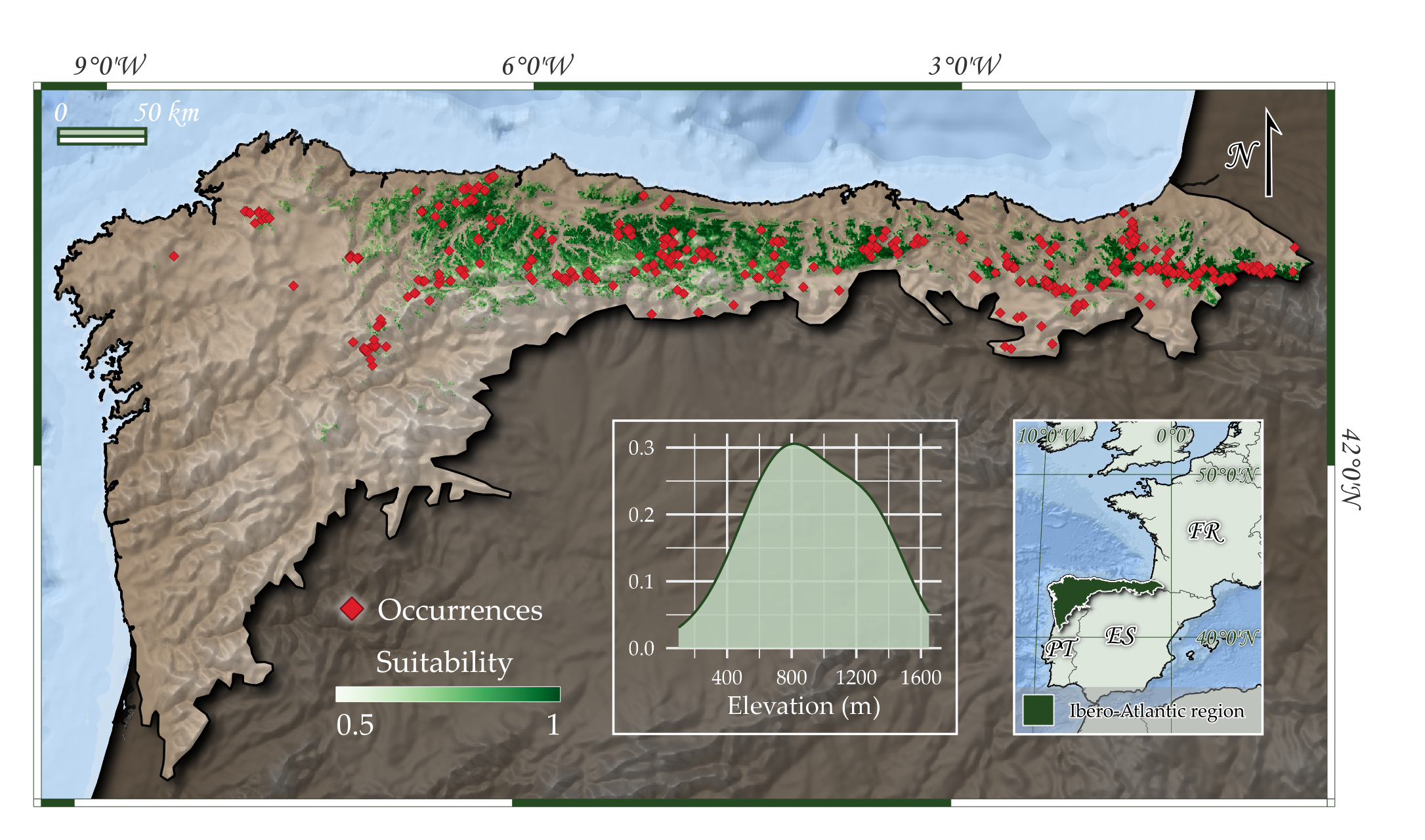 For their climatic requirements, beechwoods prefer north-facing slopes (less productive as croplands or pastures and harder to burn, thus having been reserved for timber and less deforested by traditional agrarian communities, leading to the relative abundance of these forests) and are rare in lowlands, increasingly so towards the south and the west of the ecoregion, where they ultimately disappear altogether, as happens in Portugal. It has been argued that the expansion of beechwoods at the expense of T1By on acid substrates was caused or accelerated by differential human pressure on the more valuable timber of oak trees.