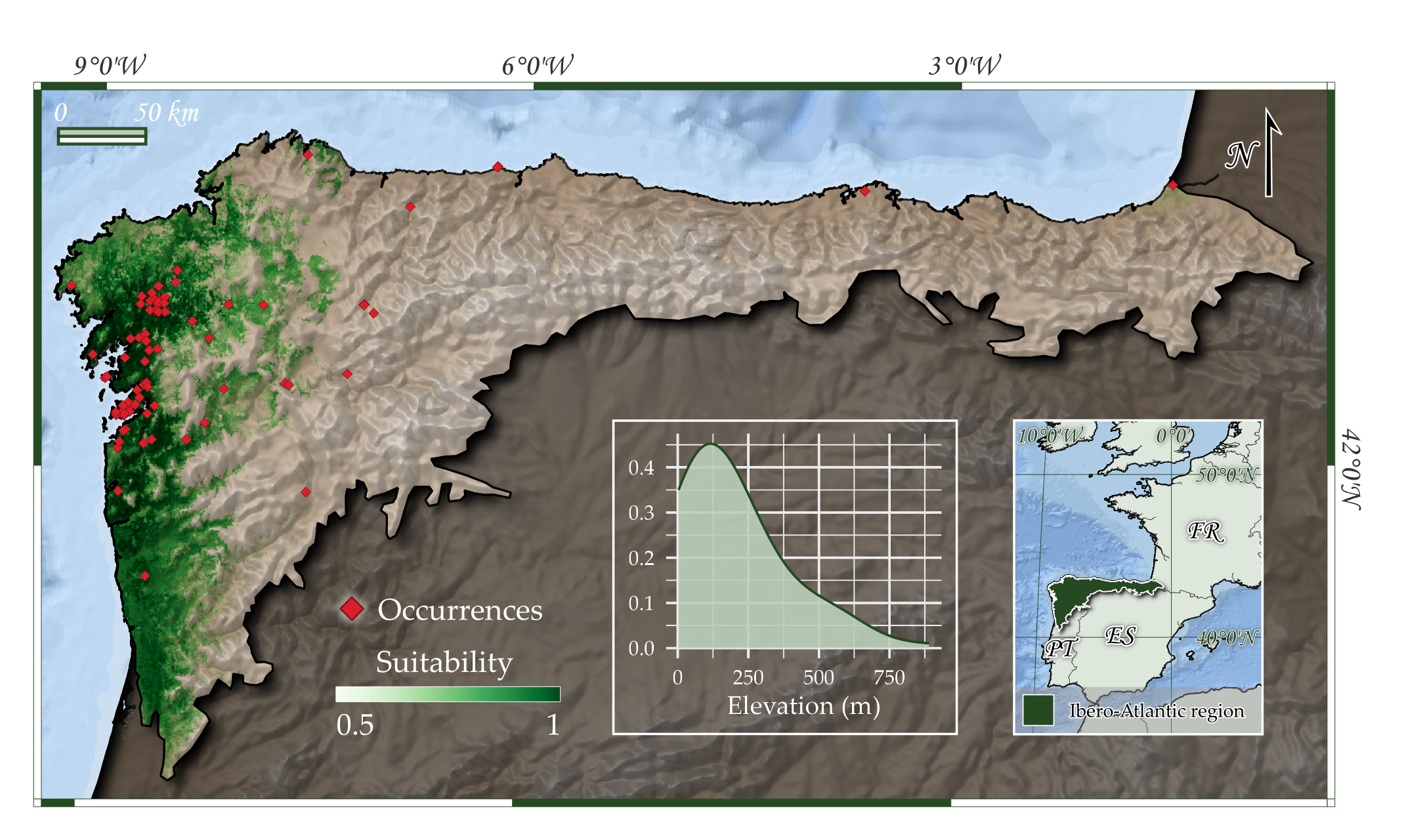 The true natural range of these pine woodlands has been obscured by extensive plantations, especially in the last 150 years, but palynological records and other lines of molecular and historical evidence proof beyond any reasonable doubt the native status of Pinus pinaster, at least in western Asturian and Galician coasts.