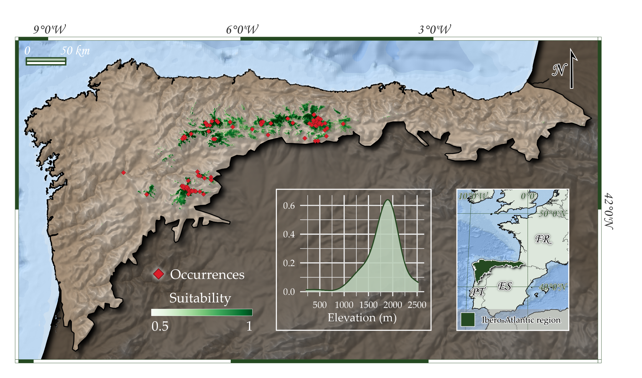 Known occurrences and potential area of occupancy of the habitat type in the study region.