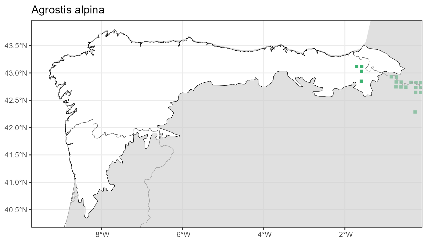 Localities (10 x 10 km) where the species has been recorded in the context of the study area. The complete distribution of the species in the Iberian Peninsula can be found in AFLIBER.