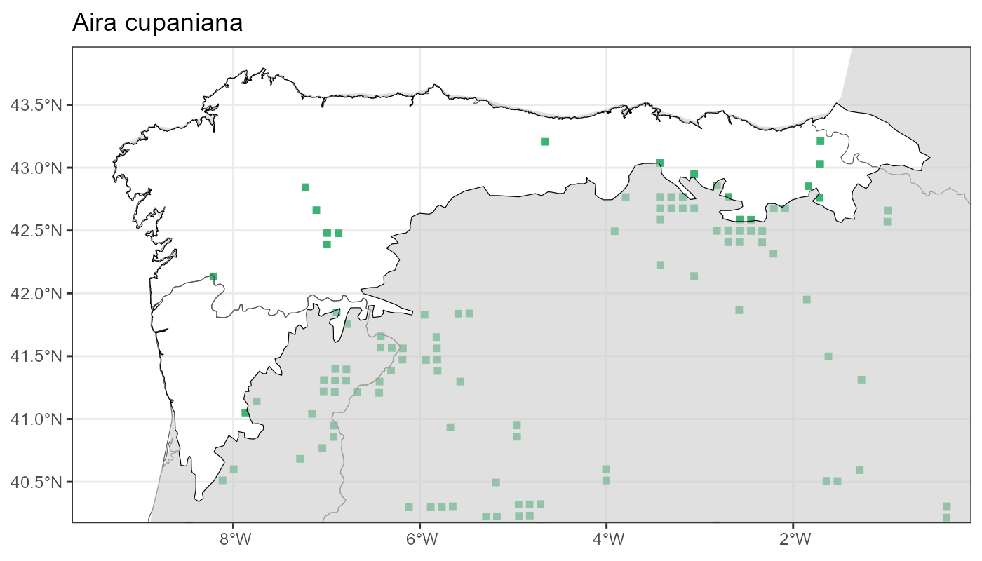 Localities (10 x 10 km) where the species has been recorded in the context of the study area. The complete distribution of the species in the Iberian Peninsula can be found in AFLIBER.