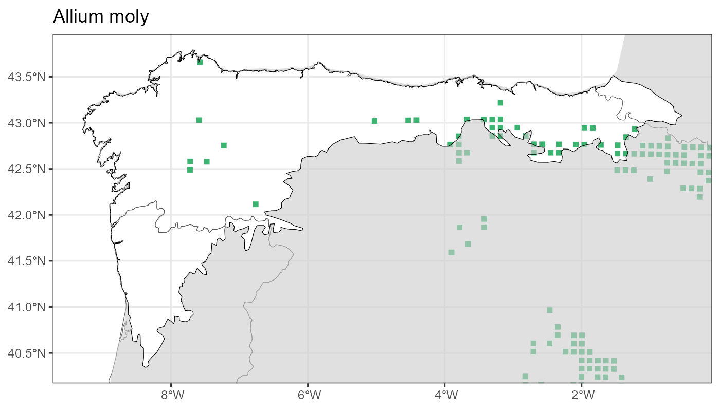 Localities (10 x 10 km) where the species has been recorded in the context of the study area. The complete distribution of the species in the Iberian Peninsula can be found in AFLIBER.