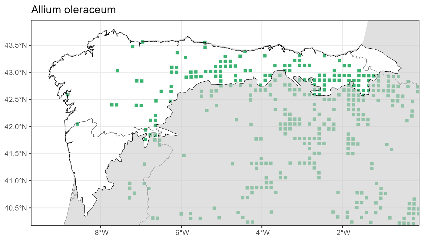 Localities (10 x 10 km) where the species has been recorded in the context of the study area. The complete distribution of the species in the Iberian Peninsula can be found in AFLIBER.