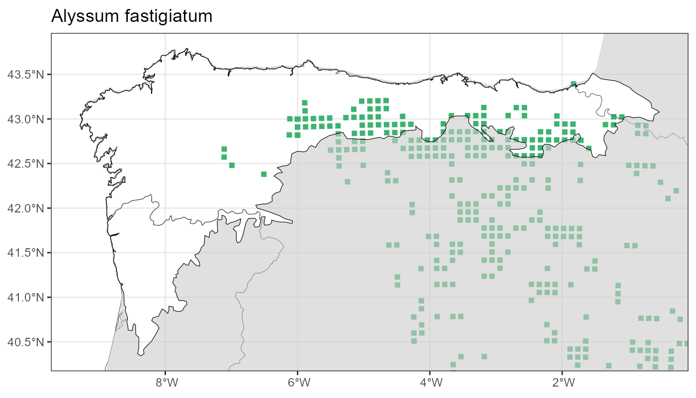 Localities (10 x 10 km) where the species has been recorded in the context of the study area. The complete distribution of the species in the Iberian Peninsula can be found in AFLIBER.
