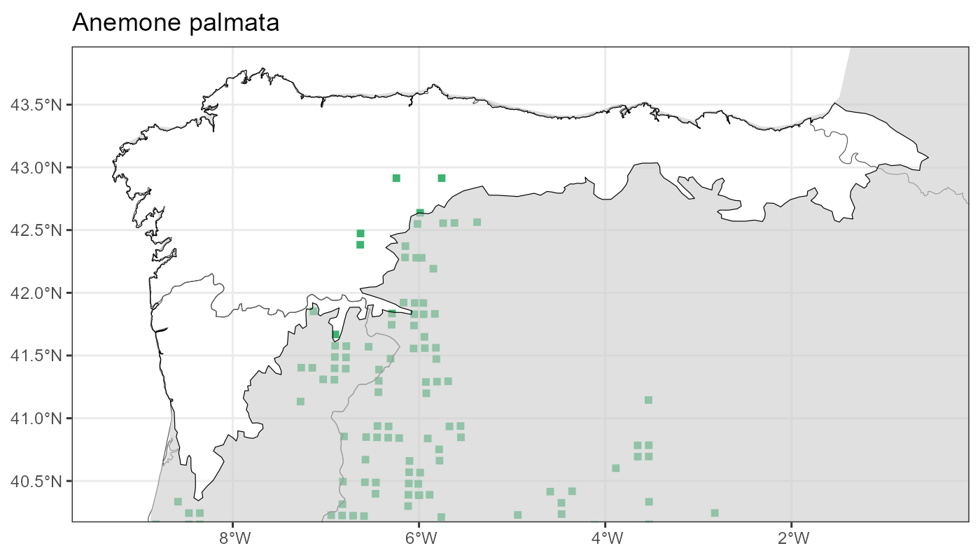 Localities (10 x 10 km) where the species has been recorded in the context of the study area. The complete distribution of the species in the Iberian Peninsula can be found in AFLIBER.