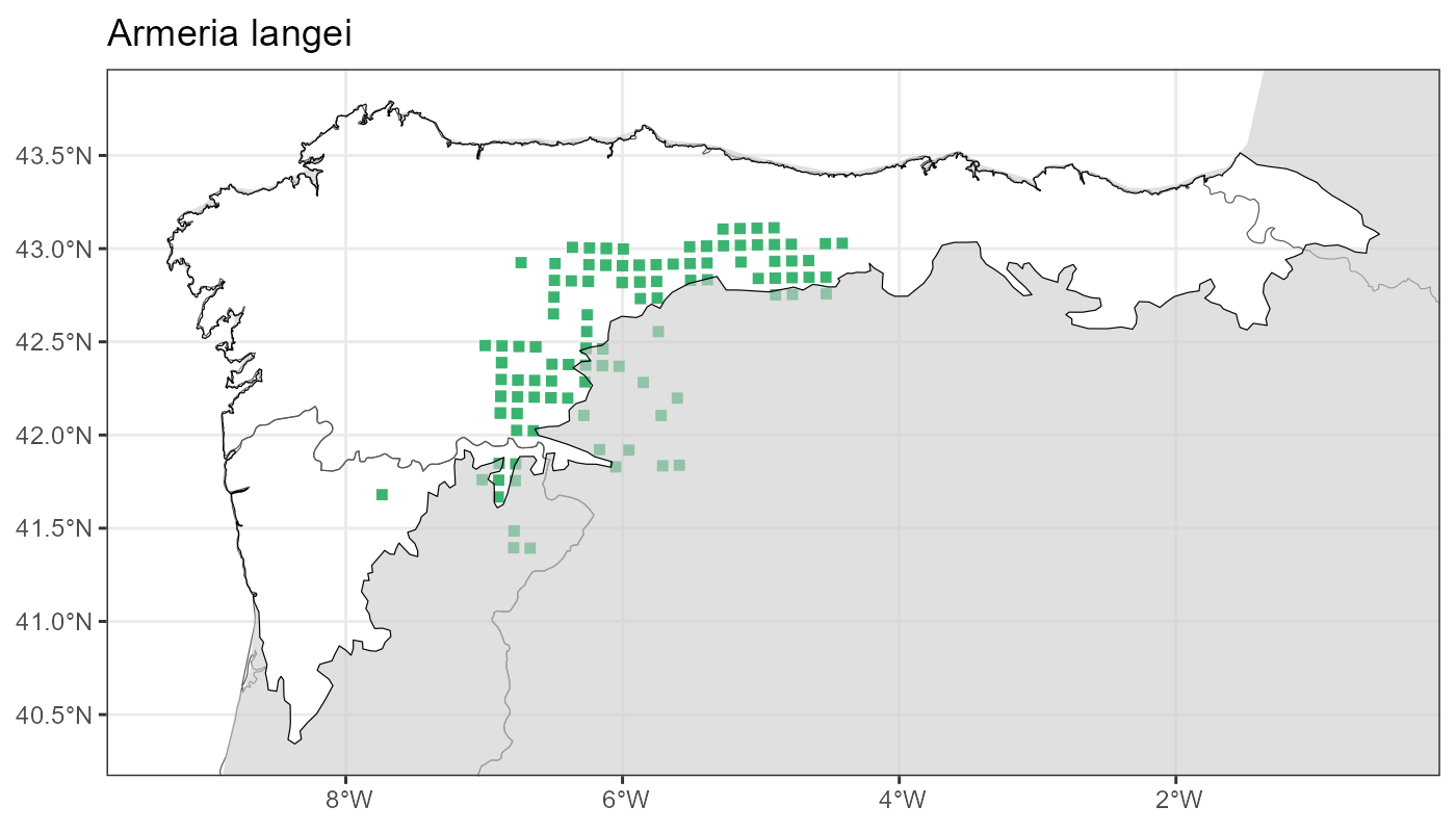 Localities (10 x 10 km) where the species has been recorded in the context of the study area. The complete distribution of the species in the Iberian Peninsula can be found in AFLIBER.
