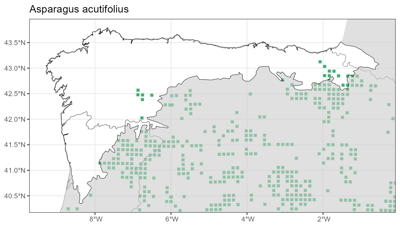 Localities (10 x 10 km) where the species has been recorded in the context of the study area. The complete distribution of the species in the Iberian Peninsula can be found in AFLIBER.