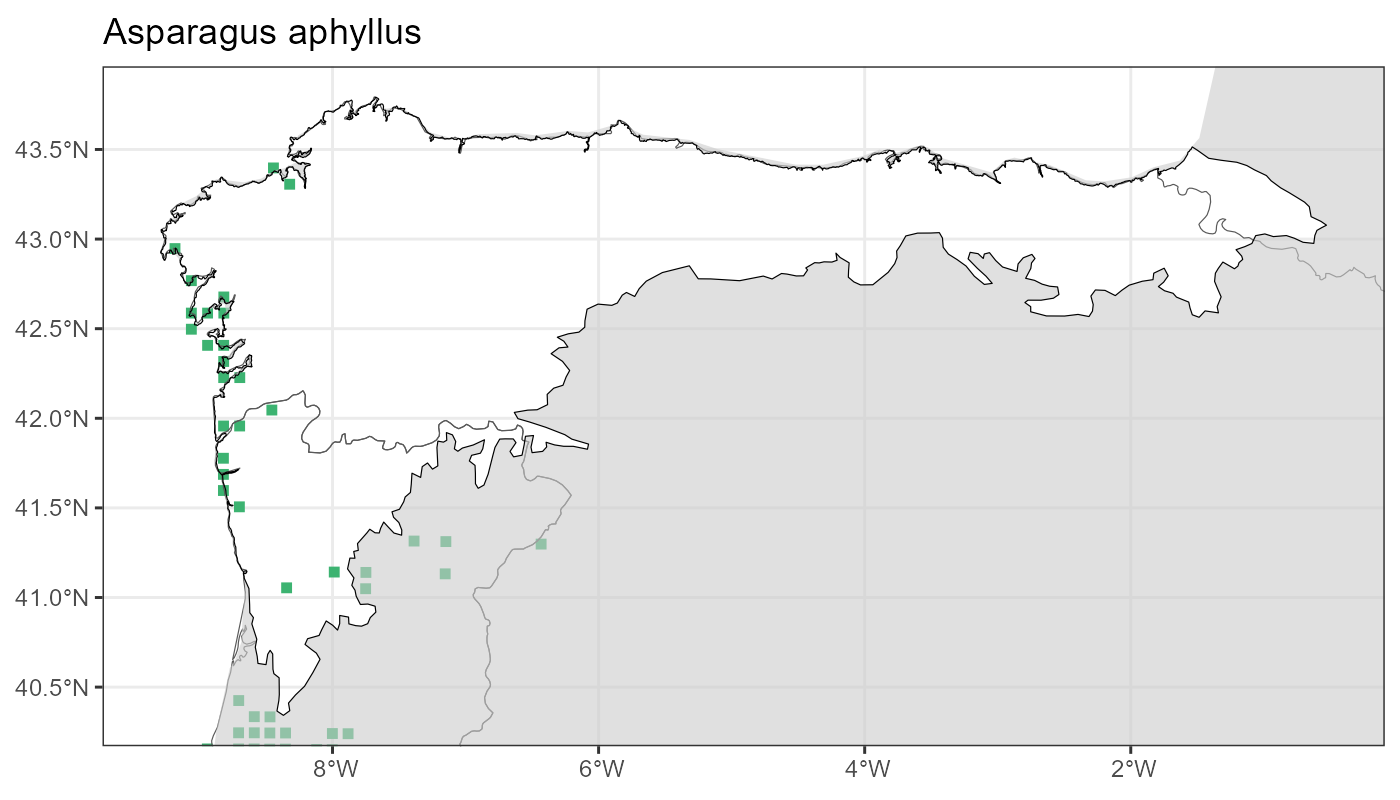 Localities (10 x 10 km) where the species has been recorded in the context of the study area. The complete distribution of the species in the Iberian Peninsula can be found in AFLIBER.