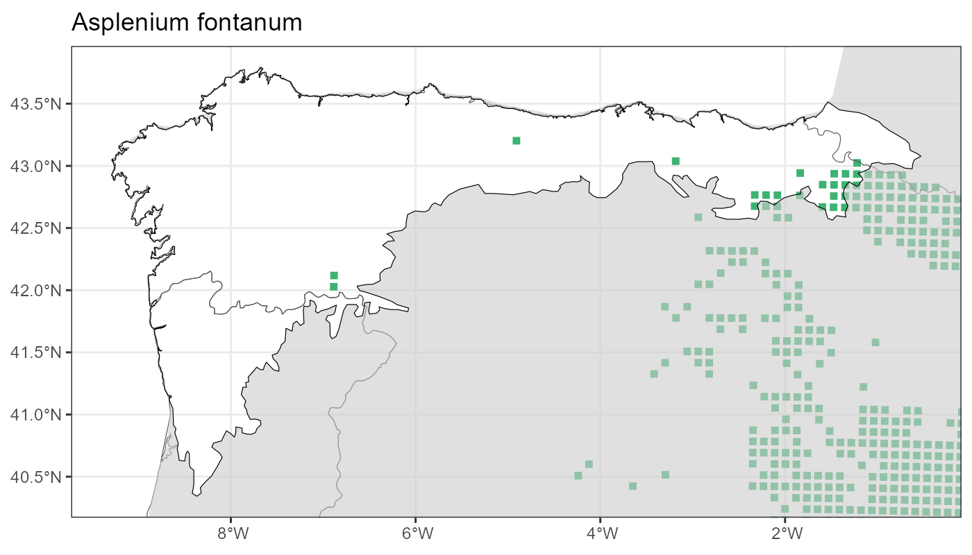 Localities (10 x 10 km) where the species has been recorded in the context of the study area. The complete distribution of the species in the Iberian Peninsula can be found in AFLIBER.