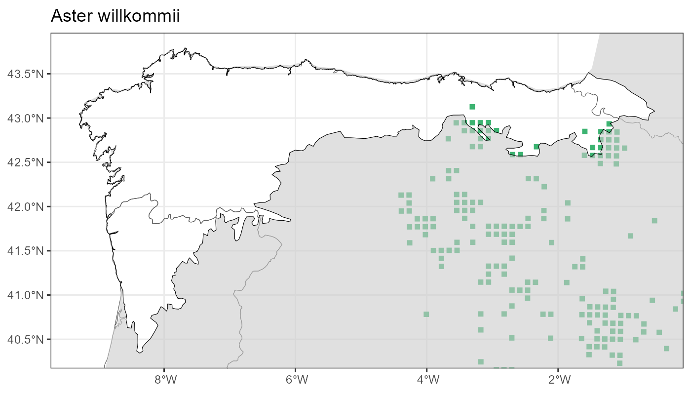 Localities (10 x 10 km) where the species has been recorded in the context of the study area. The complete distribution of the species in the Iberian Peninsula can be found in AFLIBER.