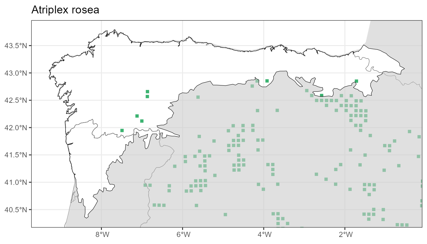 Localities (10 x 10 km) where the species has been recorded in the context of the study area. The complete distribution of the species in the Iberian Peninsula can be found in AFLIBER.