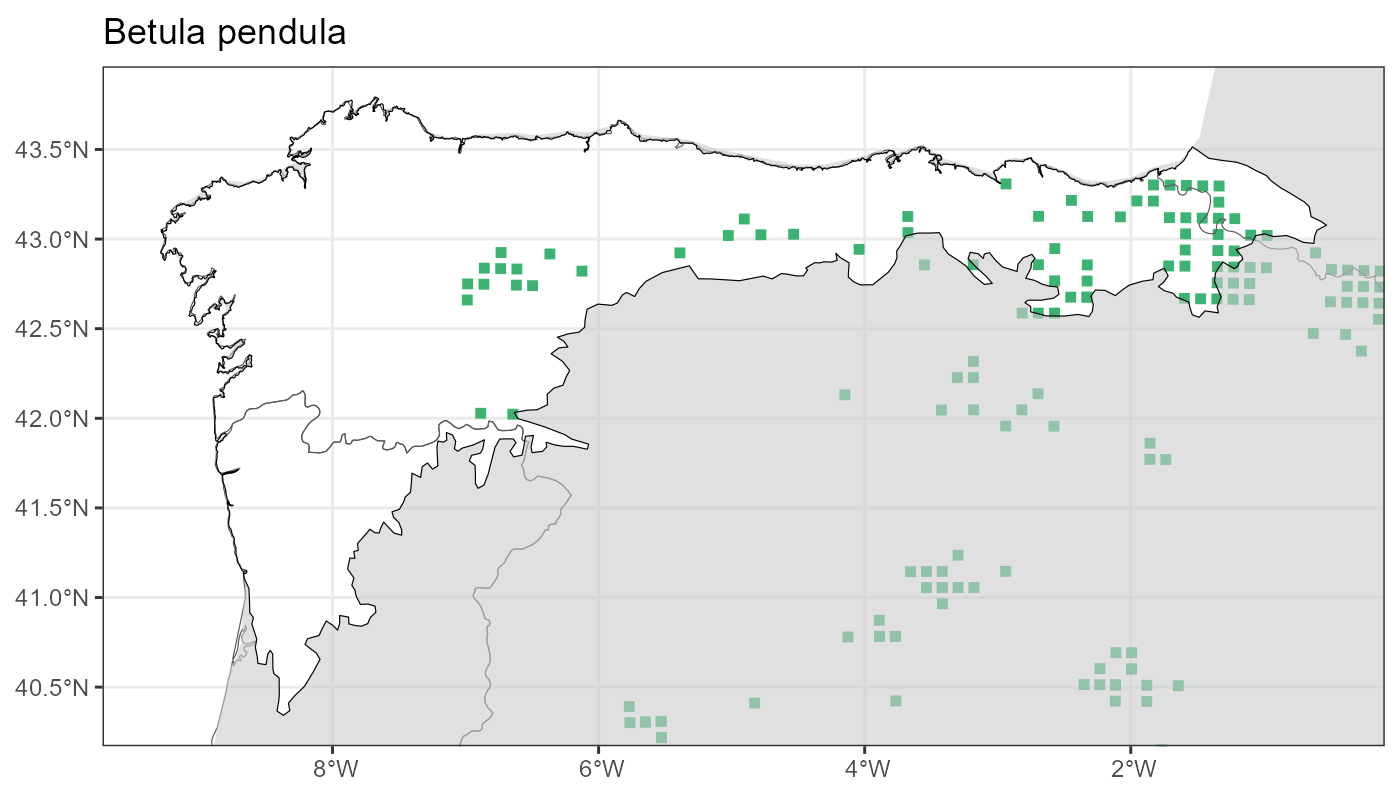 Localities (10 x 10 km) where the species has been recorded in the context of the study area. The complete distribution of the species in the Iberian Peninsula can be found in AFLIBER.