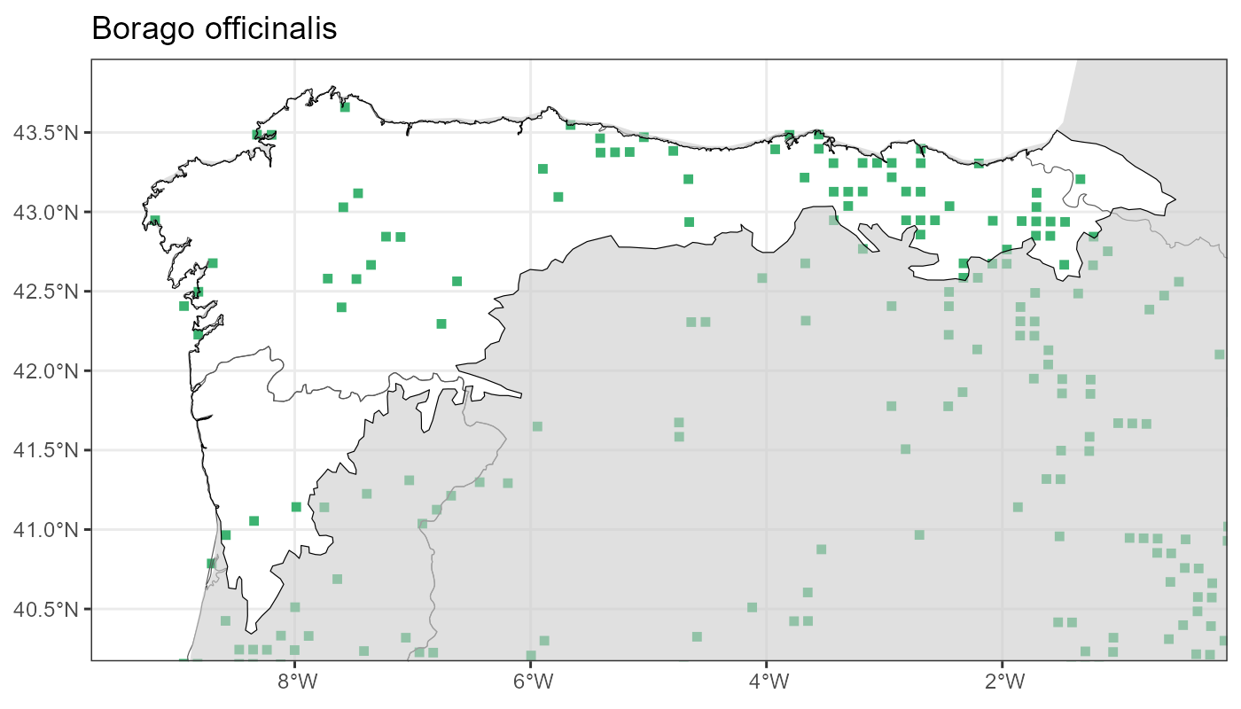 Localities (10 x 10 km) where the species has been recorded in the context of the study area. The complete distribution of the species in the Iberian Peninsula can be found in AFLIBER.