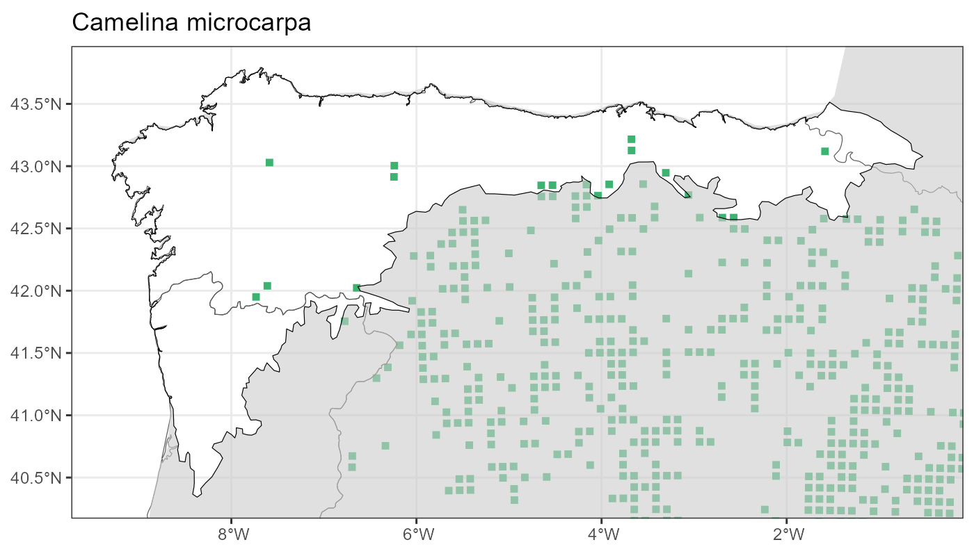 Localities (10 x 10 km) where the species has been recorded in the context of the study area. The complete distribution of the species in the Iberian Peninsula can be found in AFLIBER.