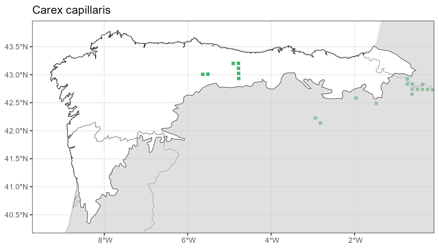 Localities (10 x 10 km) where the species has been recorded in the context of the study area. The complete distribution of the species in the Iberian Peninsula can be found in AFLIBER.