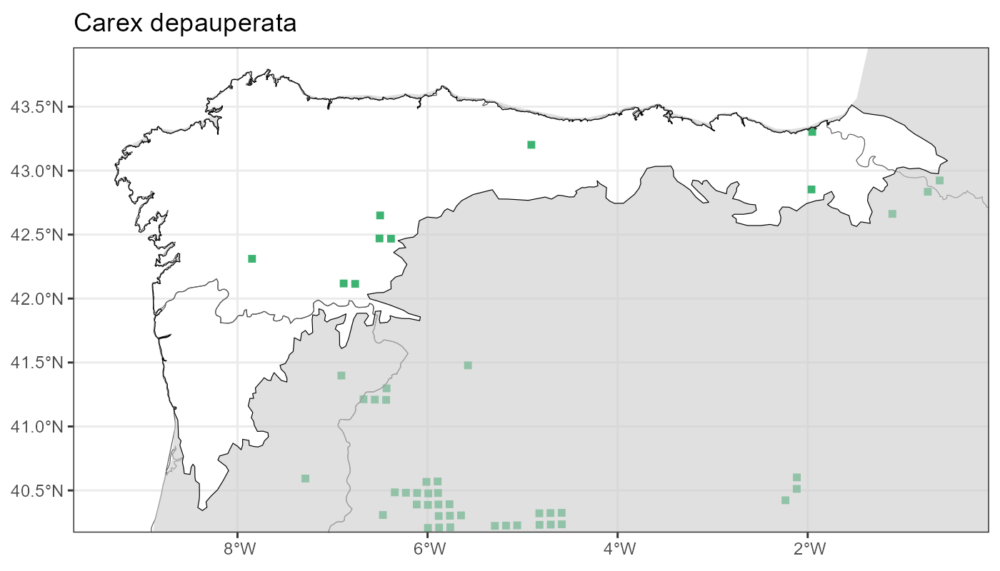 Localities (10 x 10 km) where the species has been recorded in the context of the study area. The complete distribution of the species in the Iberian Peninsula can be found in AFLIBER.