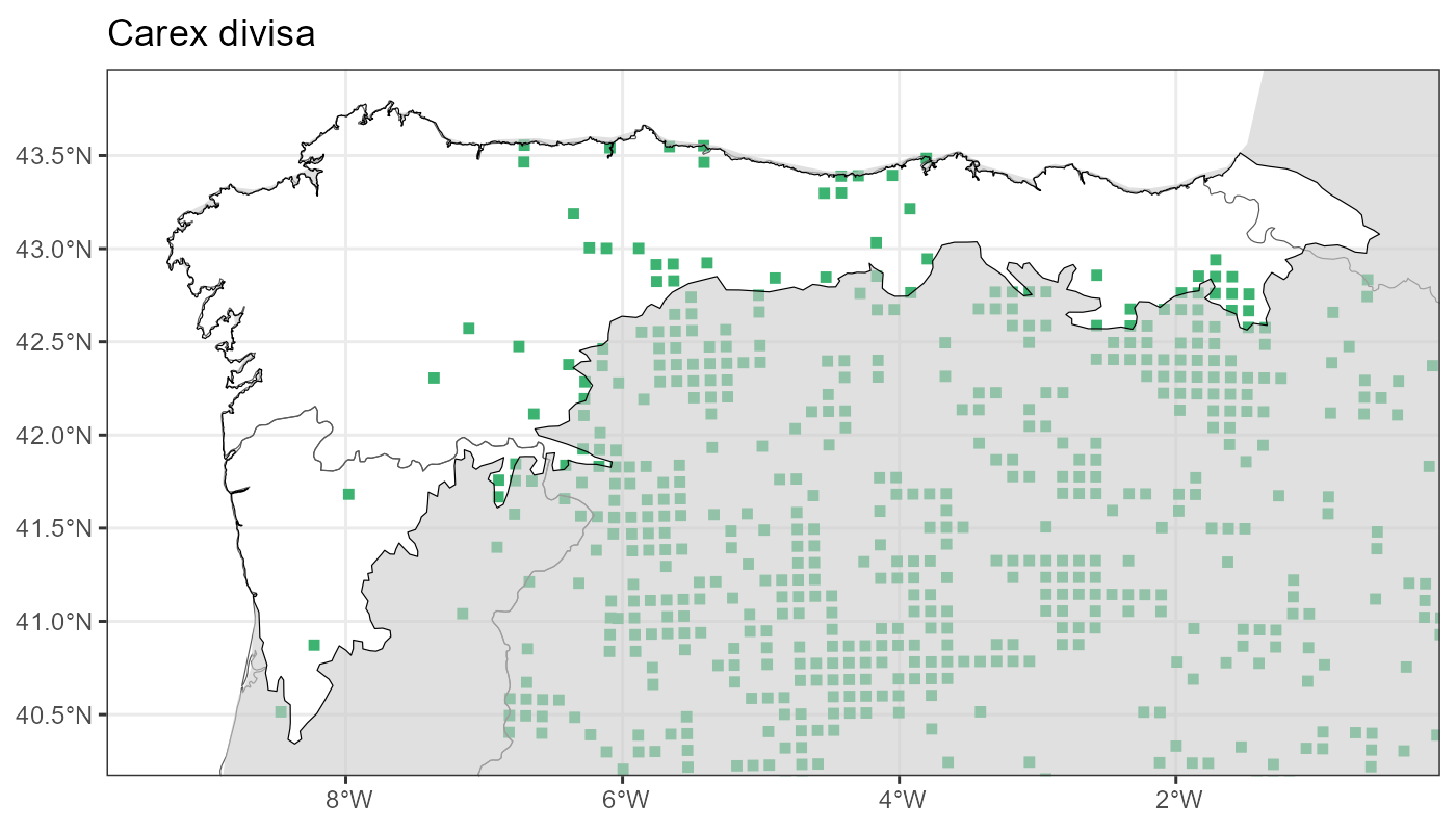 Localities (10 x 10 km) where the species has been recorded in the context of the study area. The complete distribution of the species in the Iberian Peninsula can be found in AFLIBER.