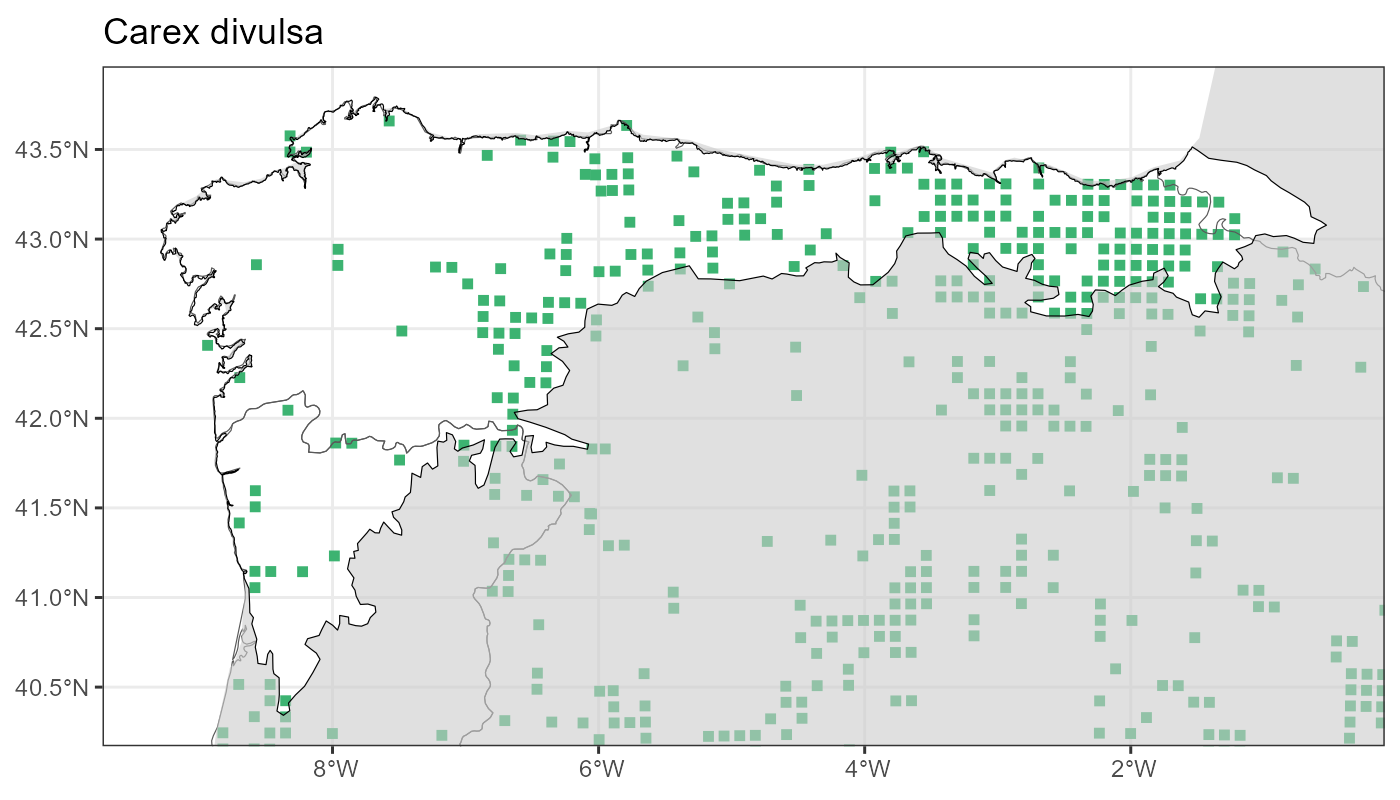 Localities (10 x 10 km) where the species has been recorded in the context of the study area. The complete distribution of the species in the Iberian Peninsula can be found in AFLIBER.