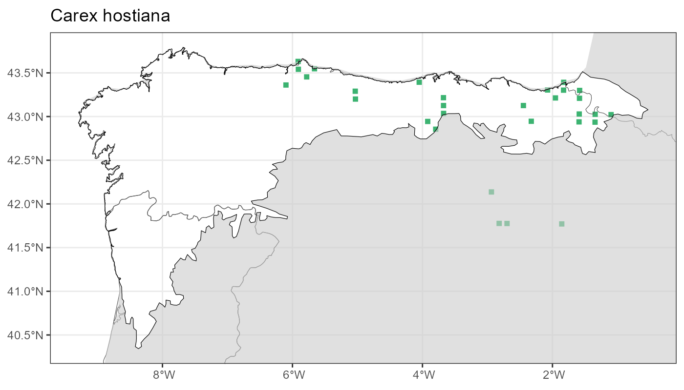 Localities (10 x 10 km) where the species has been recorded in the context of the study area. The complete distribution of the species in the Iberian Peninsula can be found in AFLIBER.