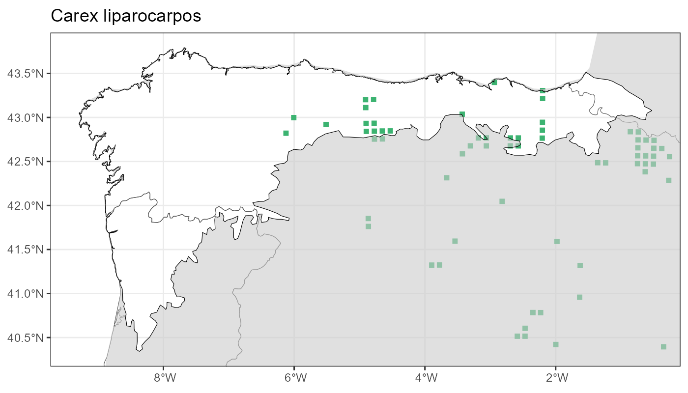 Localities (10 x 10 km) where the species has been recorded in the context of the study area. The complete distribution of the species in the Iberian Peninsula can be found in AFLIBER.