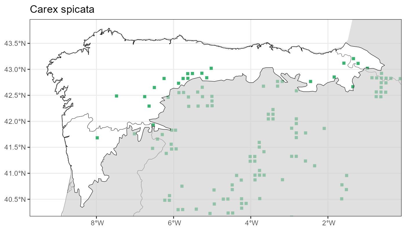 Localities (10 x 10 km) where the species has been recorded in the context of the study area. The complete distribution of the species in the Iberian Peninsula can be found in AFLIBER.