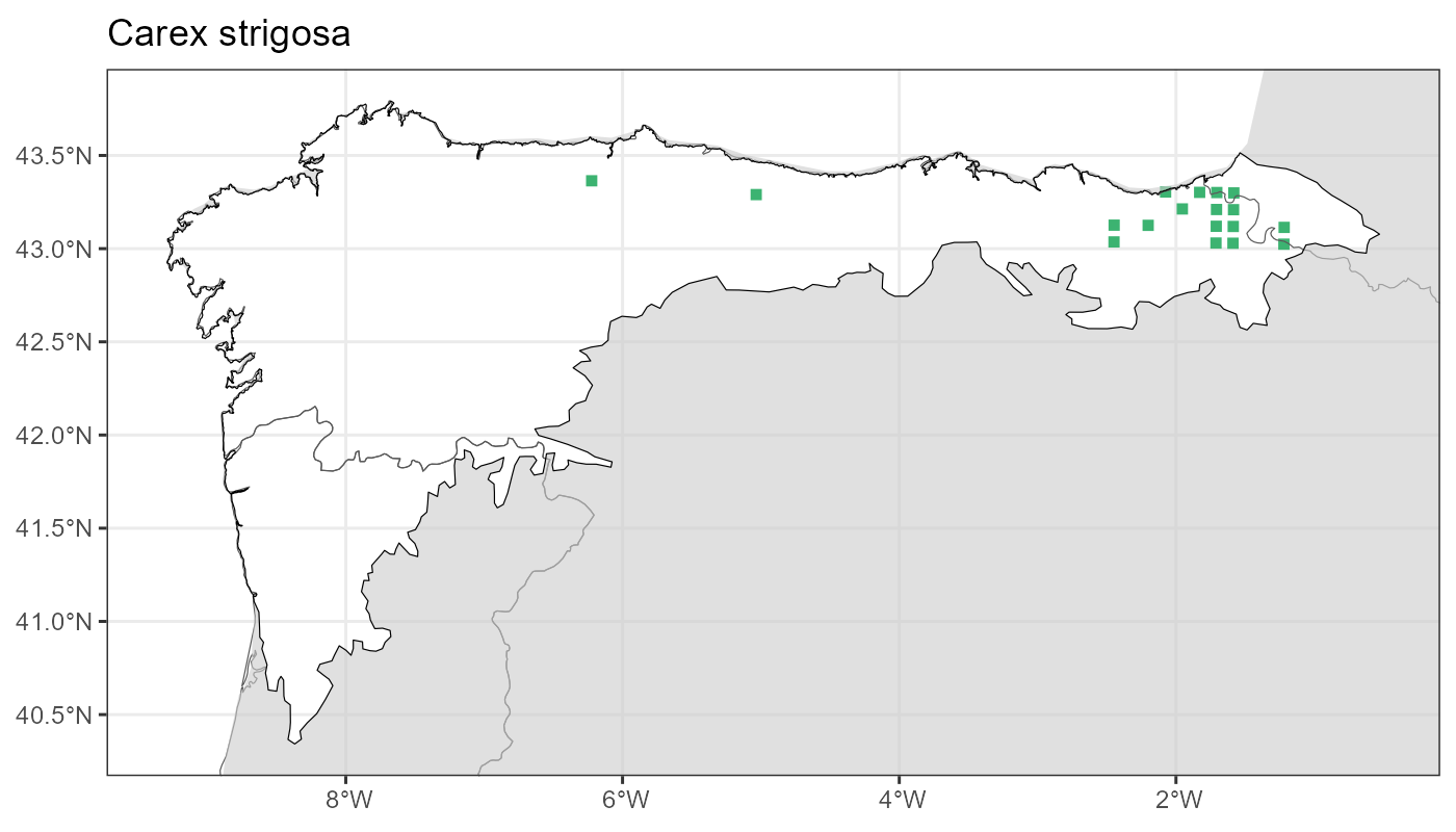 Localities (10 x 10 km) where the species has been recorded in the context of the study area. The complete distribution of the species in the Iberian Peninsula can be found in AFLIBER.
