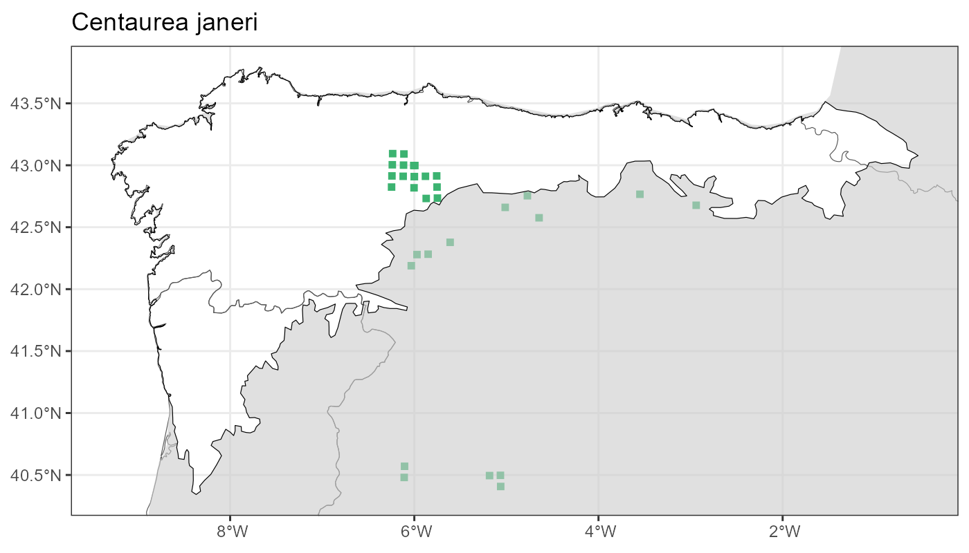 Localities (10 x 10 km) where the species has been recorded in the context of the study area. The complete distribution of the species in the Iberian Peninsula can be found in AFLIBER.