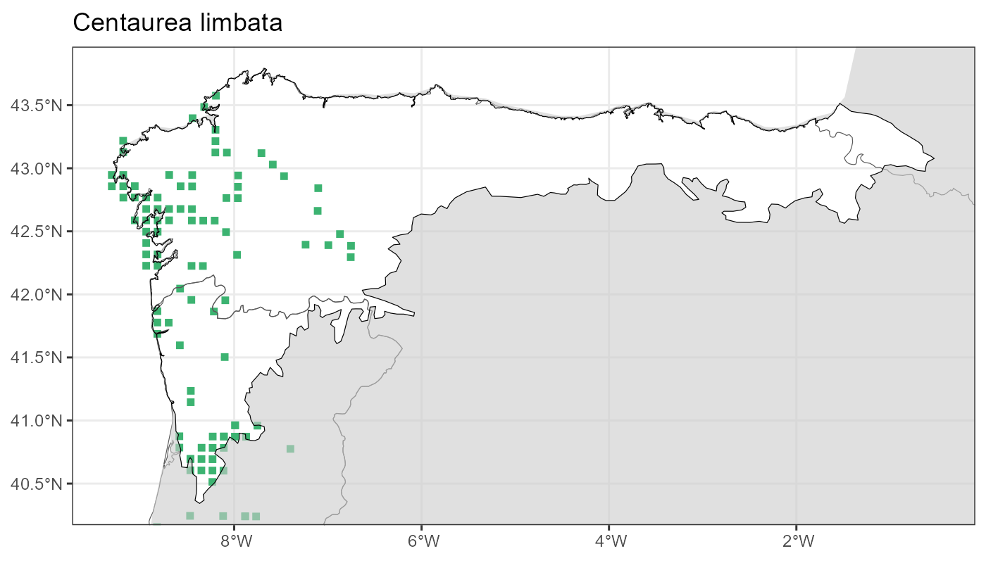 Localities (10 x 10 km) where the species has been recorded in the context of the study area. The complete distribution of the species in the Iberian Peninsula can be found in AFLIBER.