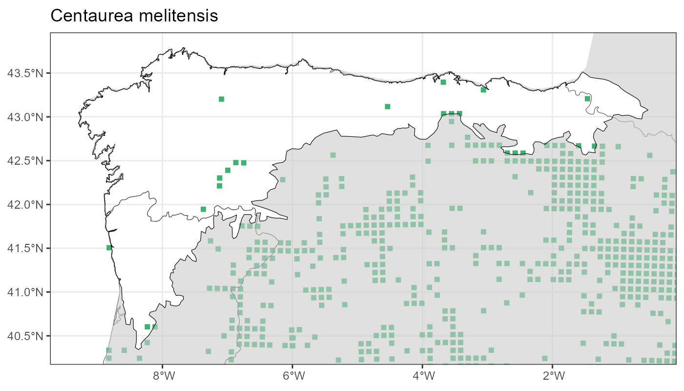 Localities (10 x 10 km) where the species has been recorded in the context of the study area. The complete distribution of the species in the Iberian Peninsula can be found in AFLIBER.