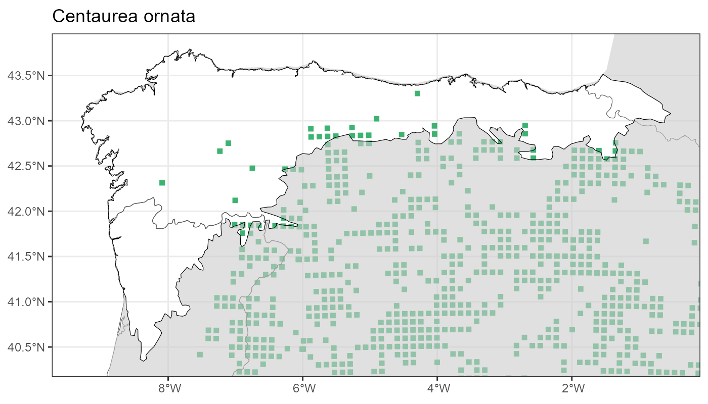 Localities (10 x 10 km) where the species has been recorded in the context of the study area. The complete distribution of the species in the Iberian Peninsula can be found in AFLIBER.