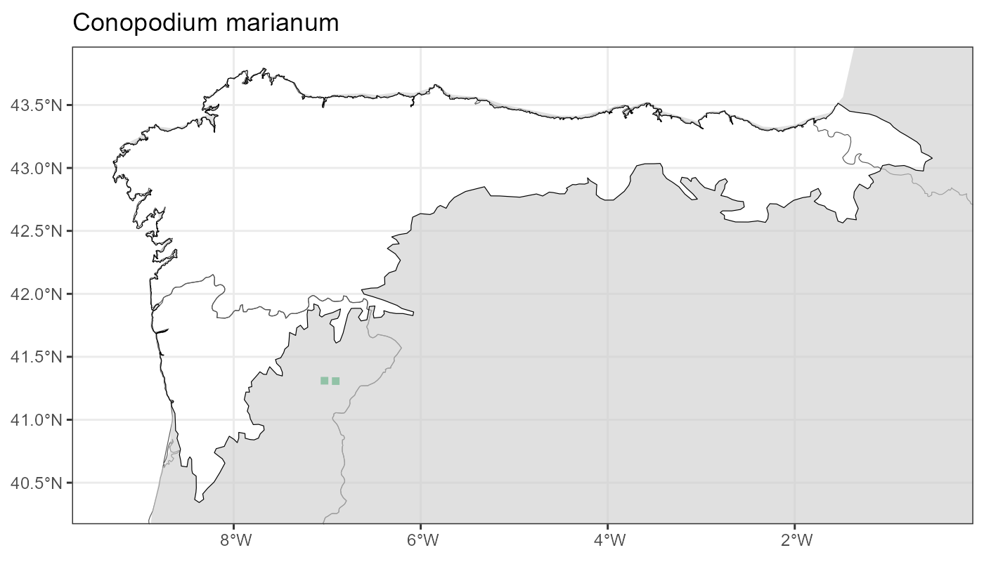 Localities (10 x 10 km) where the species has been recorded in the context of the study area. The complete distribution of the species in the Iberian Peninsula can be found in AFLIBER.
