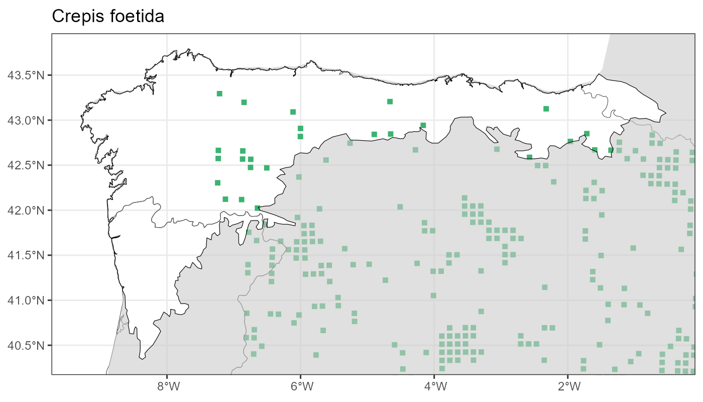Localities (10 x 10 km) where the species has been recorded in the context of the study area. The complete distribution of the species in the Iberian Peninsula can be found in AFLIBER.