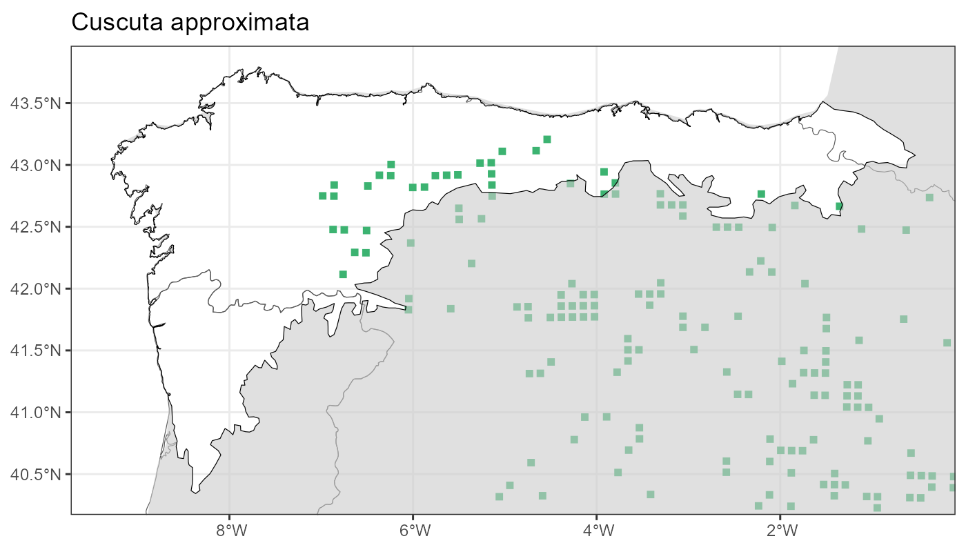 Localities (10 x 10 km) where the species has been recorded in the context of the study area. The complete distribution of the species in the Iberian Peninsula can be found in AFLIBER.