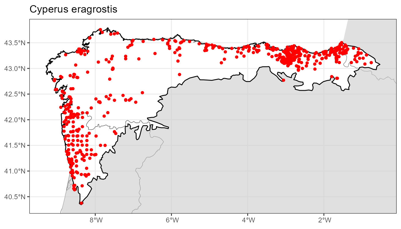 Localities (10 x 10 km) where the species has been recorded in the context of the study area. The complete distribution of the species in the Iberian Peninsula can be found in AFLIBER.