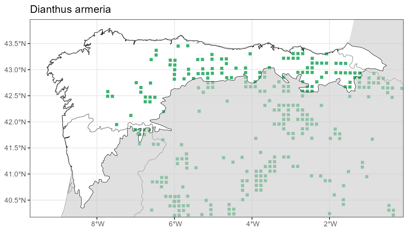 Localities (10 x 10 km) where the species has been recorded in the context of the study area. The complete distribution of the species in the Iberian Peninsula can be found in AFLIBER.