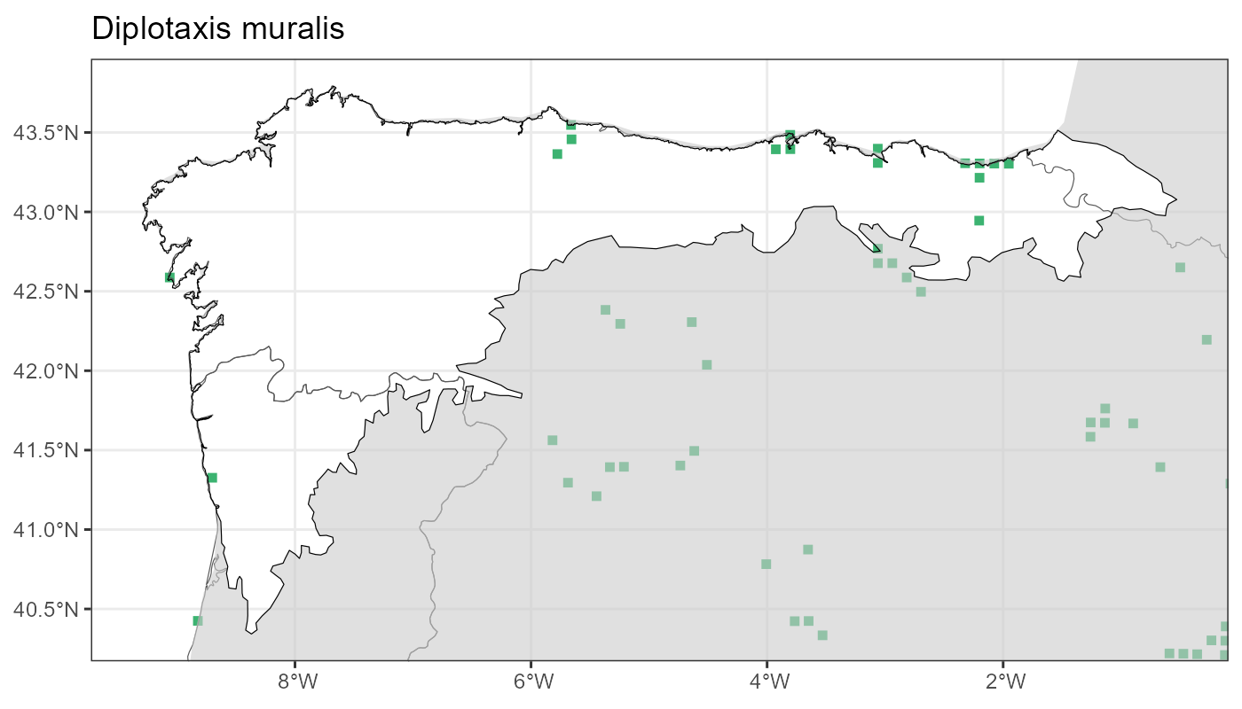 Localities (10 x 10 km) where the species has been recorded in the context of the study area. The complete distribution of the species in the Iberian Peninsula can be found in AFLIBER.