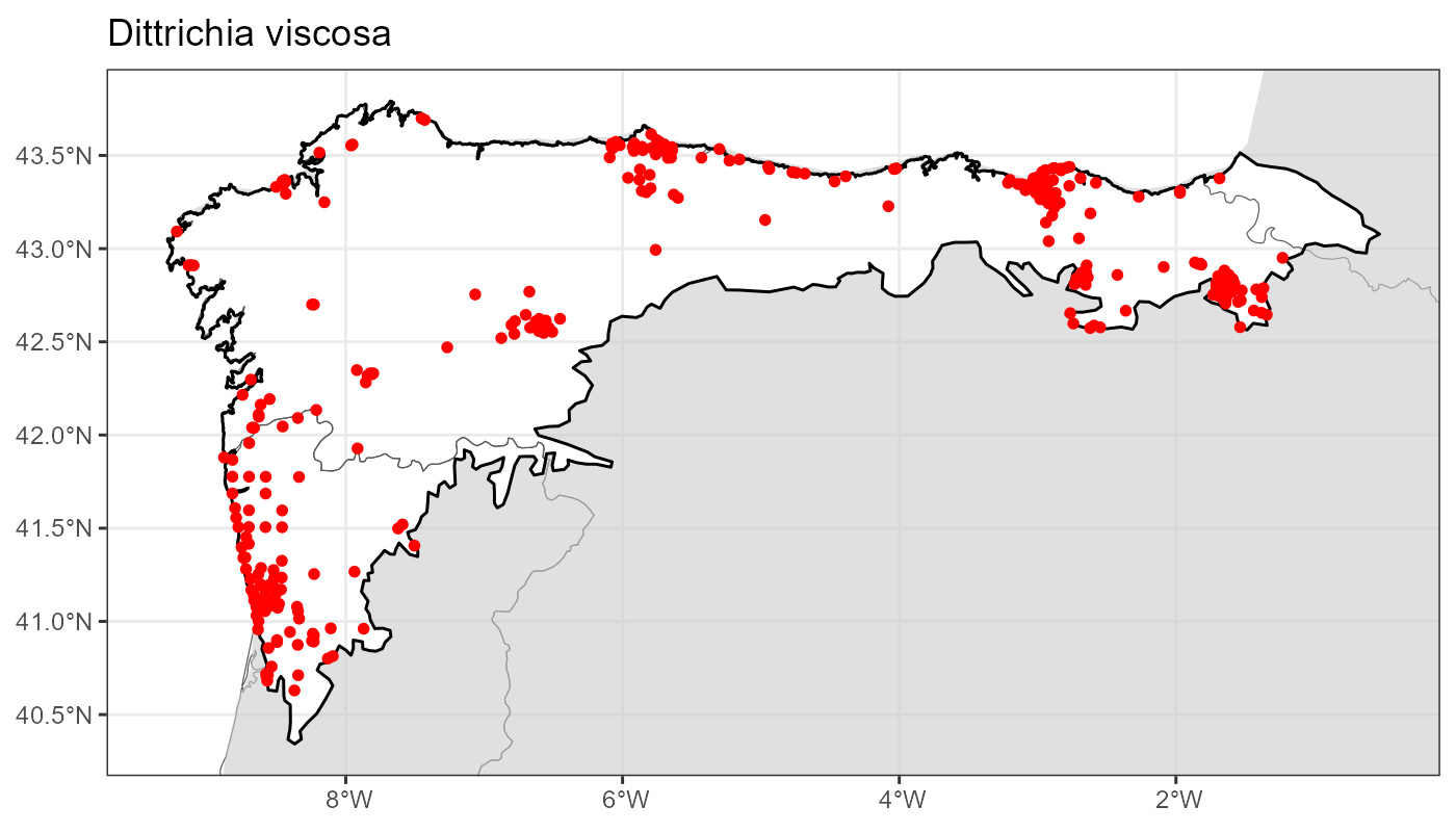 Localities (10 x 10 km) where the species has been recorded in the context of the study area. The complete distribution of the species in the Iberian Peninsula can be found in AFLIBER.