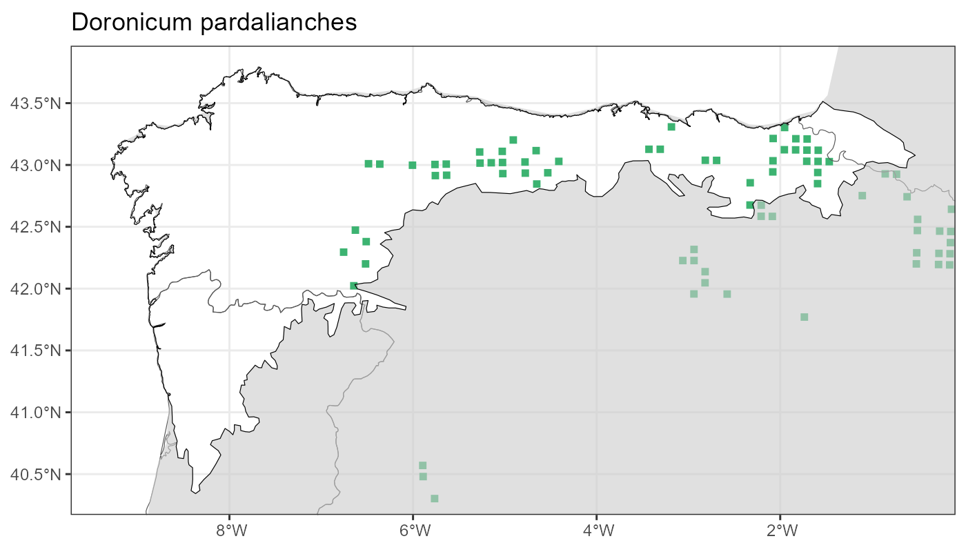 Localities (10 x 10 km) where the species has been recorded in the context of the study area. The complete distribution of the species in the Iberian Peninsula can be found in AFLIBER.