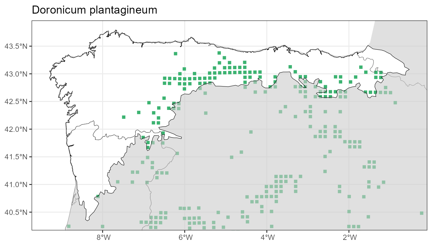 Localities (10 x 10 km) where the species has been recorded in the context of the study area. The complete distribution of the species in the Iberian Peninsula can be found in AFLIBER.