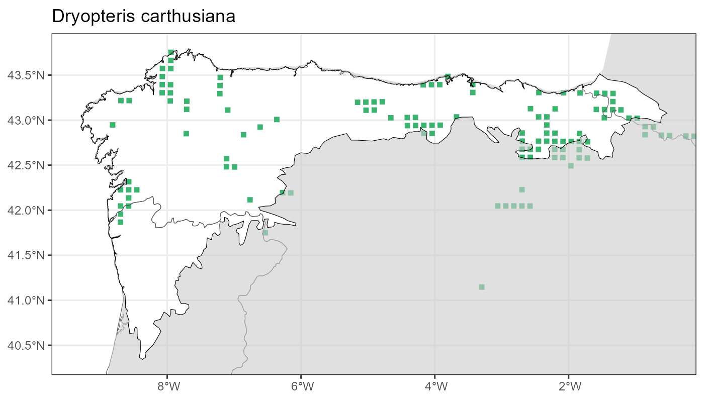 Localities (10 x 10 km) where the species has been recorded in the context of the study area. The complete distribution of the species in the Iberian Peninsula can be found in AFLIBER.