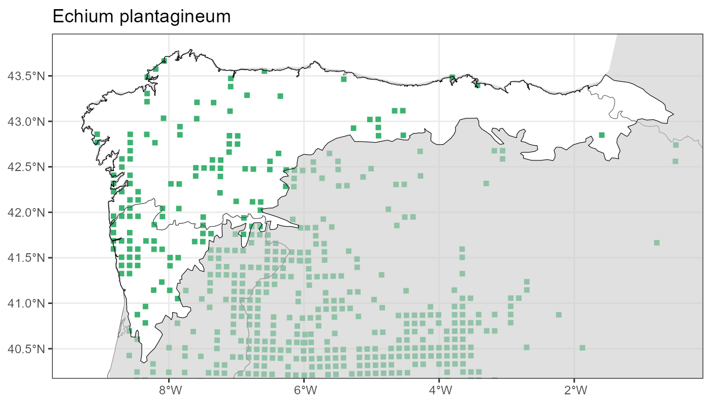 Localities (10 x 10 km) where the species has been recorded in the context of the study area. The complete distribution of the species in the Iberian Peninsula can be found in AFLIBER.