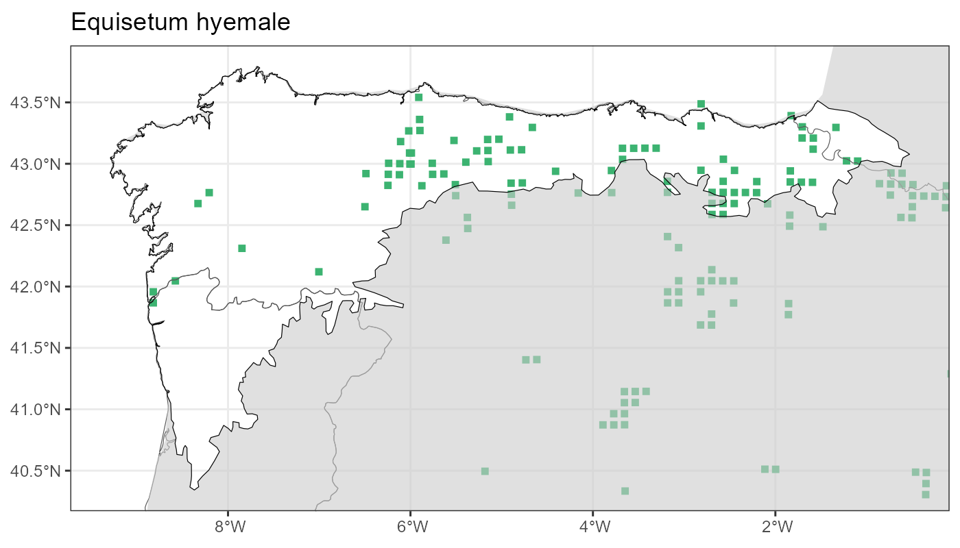 Localities (10 x 10 km) where the species has been recorded in the context of the study area. The complete distribution of the species in the Iberian Peninsula can be found in AFLIBER.