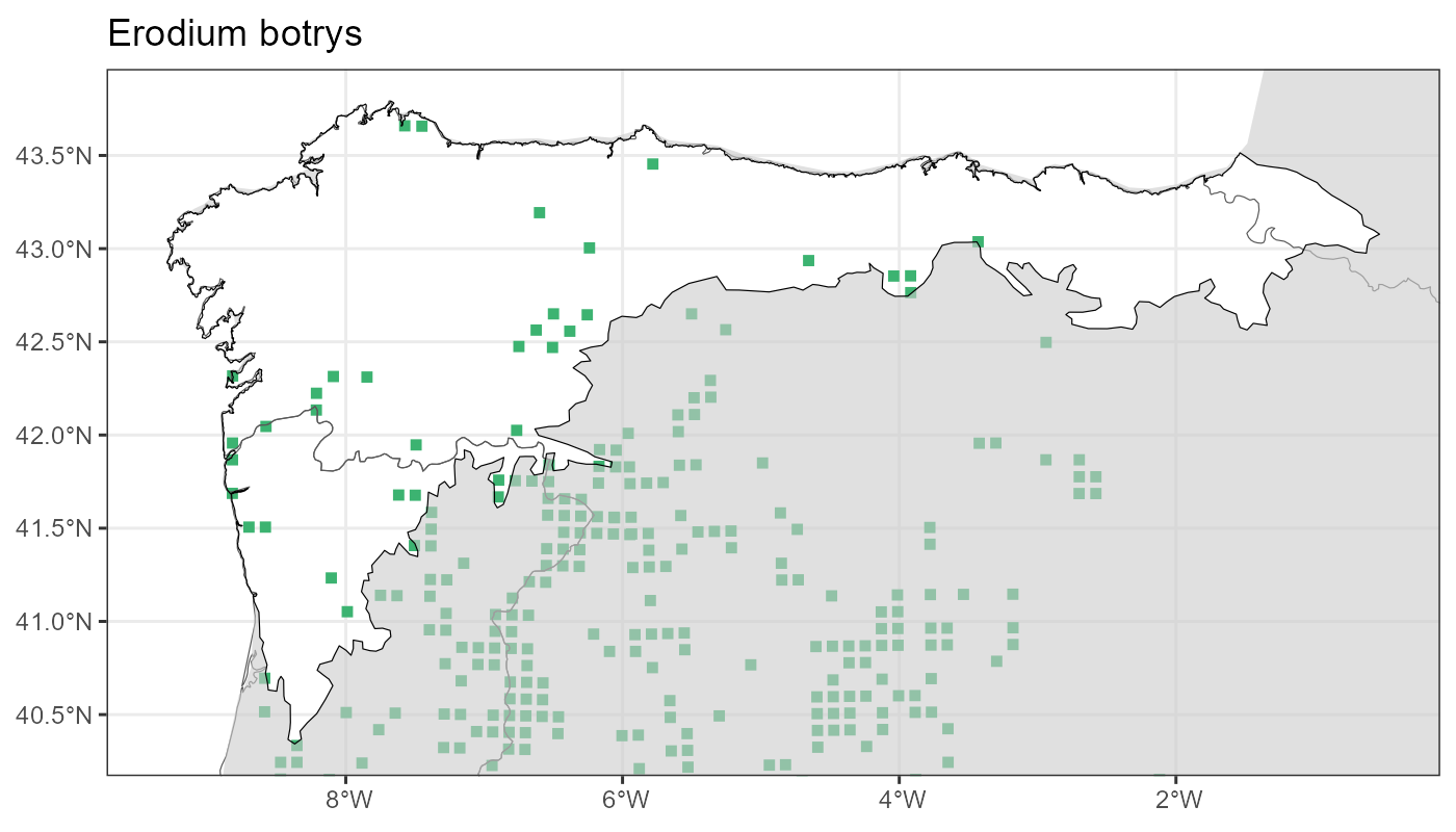 Localities (10 x 10 km) where the species has been recorded in the context of the study area. The complete distribution of the species in the Iberian Peninsula can be found in AFLIBER.