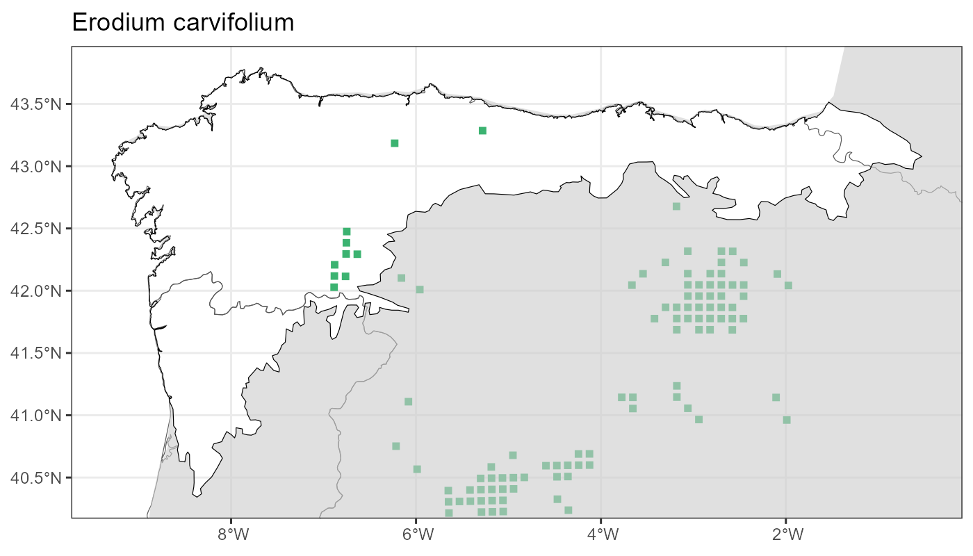 Localities (10 x 10 km) where the species has been recorded in the context of the study area. The complete distribution of the species in the Iberian Peninsula can be found in AFLIBER.