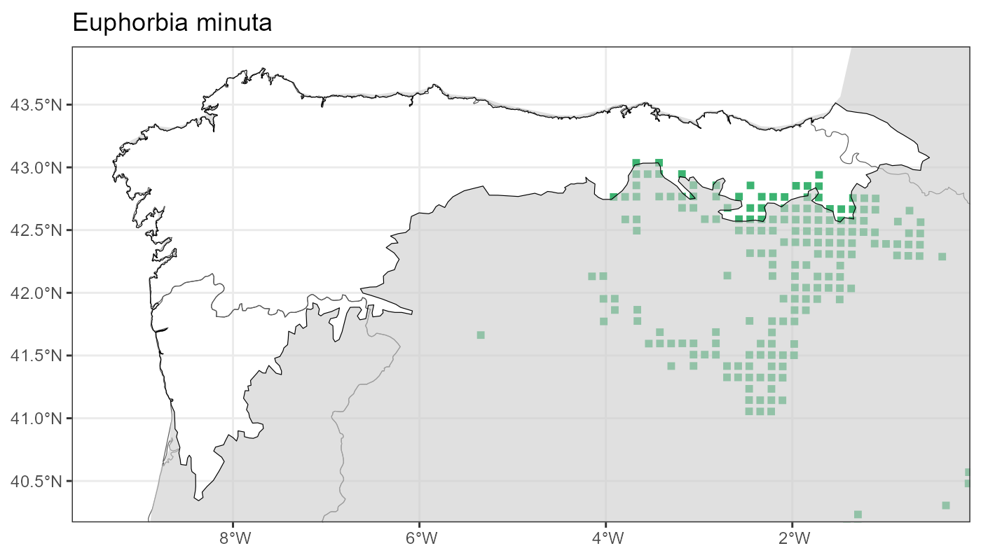 Localities (10 x 10 km) where the species has been recorded in the context of the study area. The complete distribution of the species in the Iberian Peninsula can be found in AFLIBER.